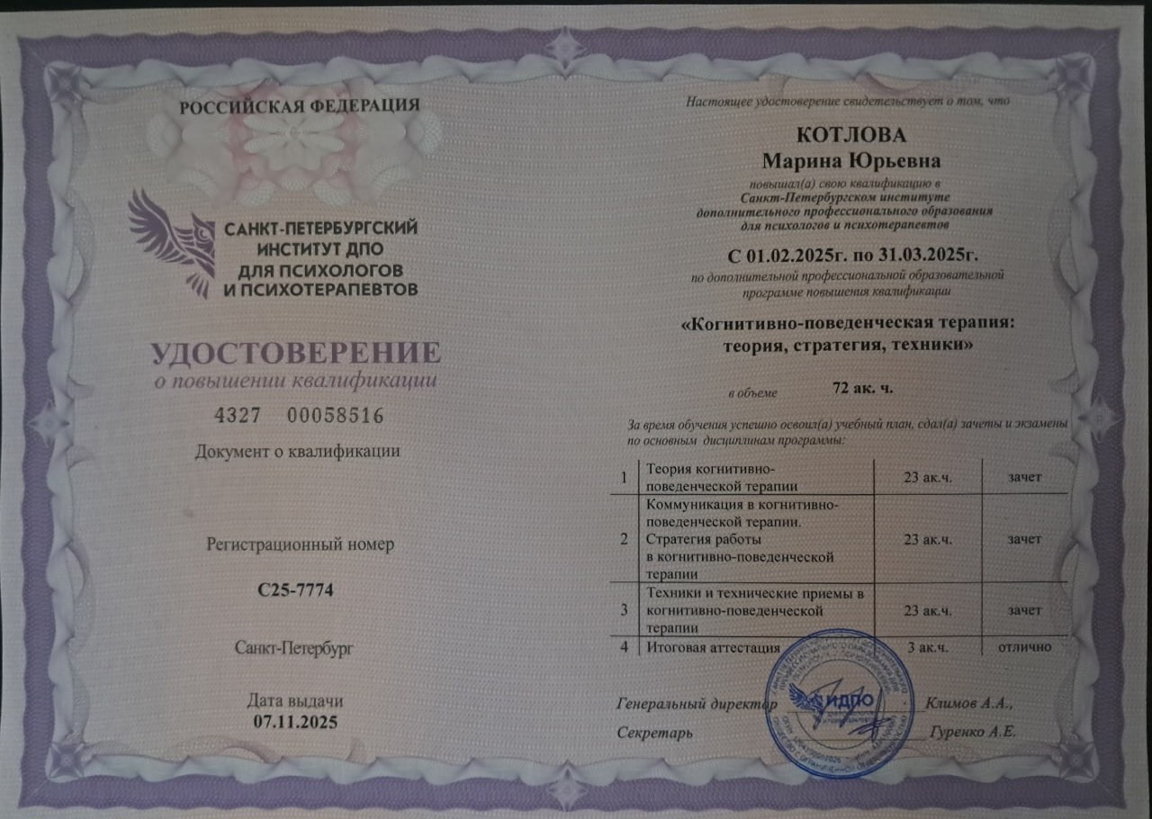 Боль после измены — решаемая проблема. Ваше ощущение «сломанности» — один из симптомов травмы, а не приговор. Я специализируюсь на работе с последствиями предательства и знаю, как помочь даже в сложных случаях. На диагностике мы сразу определим, как именно и с какой скоростью можно решить именно вашу ситуацию.