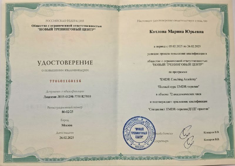 Вам не нужны годы разговоров. EMDR позволяет напрямую обработать травматические воспоминания. Уже через 4–8 сессий острая боль теряет силу, а навязчивые мысли стихают.