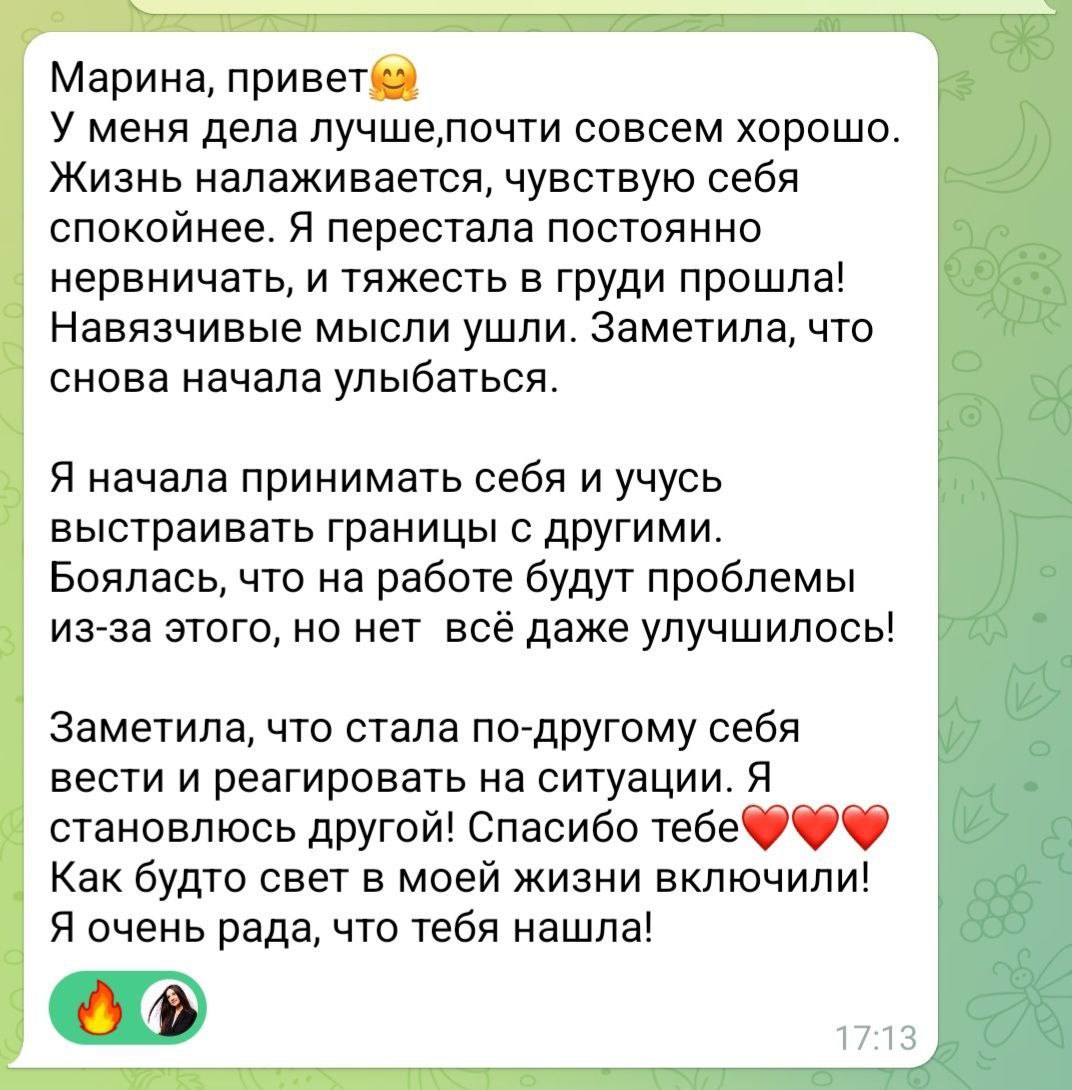 · Появилась внутренняя опора. Решение «нет» перестало быть прыжком в пустоту, а стало осознанным шагом в сторону самоуважения.